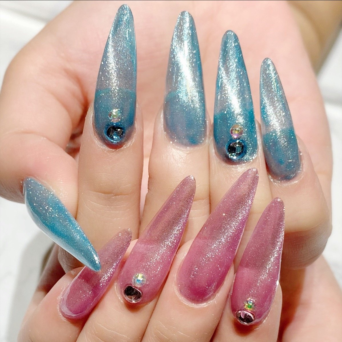 Home » 青, 赤 » スカルプネイル 人気サンプル マグネット ジェルネイル お客様のお持ち込みデザインでマグネットネイルをしました☆ 好きなカラーの上にマグネットネイルもできますのでご相談ください♪ 最新デザイン ジェルネイル キウイグラデーションスカルプネイルとは 「スカルプネイル」とは、人工爪を自爪に密着させ、爪の長さ出しや形を整えるネイルアートです。 好きな爪の形にできるので、ネイル前に行うことでアレンジの幅が広がります。 ロングネイルにしたい方や、自爪が短く悩んでいる